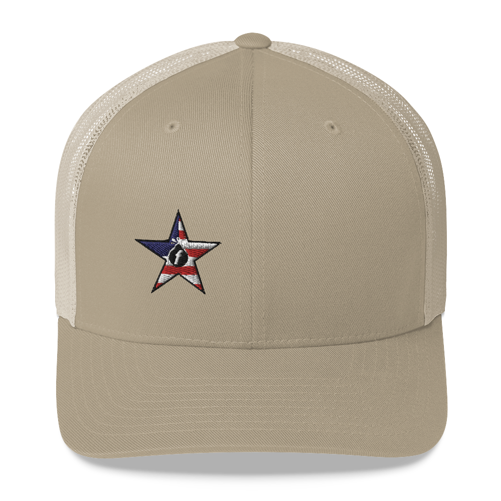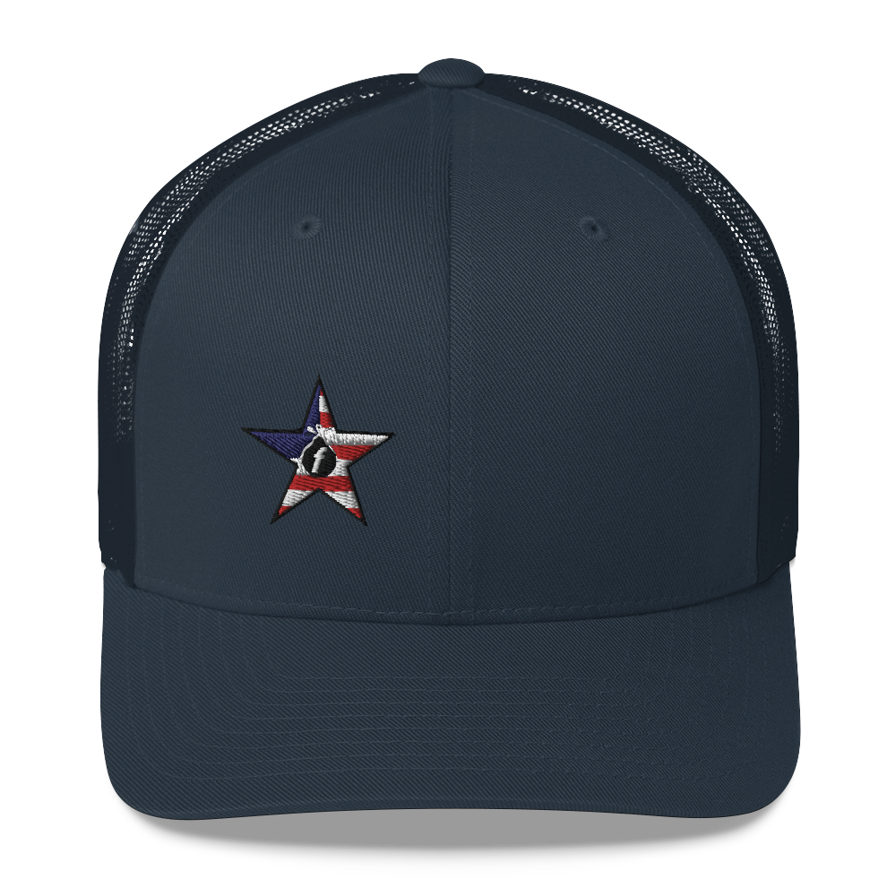Classic Fbomb militia trucker cap style with a cool fabric blend. • 47% cotton/28% nylon/25% polyester • Structured • Five...